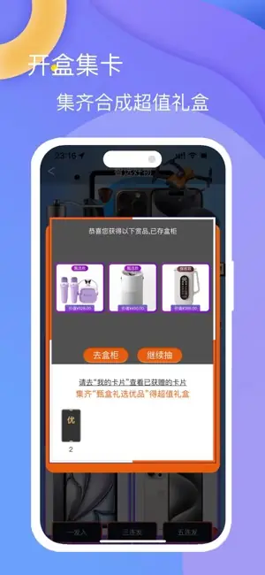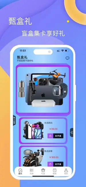 您将体验到开盲盒的无尽乐趣。每一个盲盒都藏着未知的惊喜,同时盲盒开启后会随机获得卡片。当您集齐特定的卡片,就能兑换超值的豪华礼品!无论是潮玩手办、数码精品、实用的家居好物,还是令人向往的电子产品手机平板等,都有可能成为您的囊中之物。